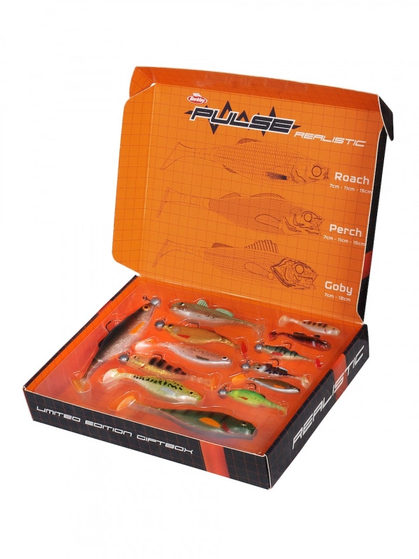 Pulse Realistic Roach -vieheessä on upea potkaiseva liike, joka on vastustamaton aktiivisille saalistajille. Pulse Realistic Perch sisältää rullaavan uintitoiminnon ja Pulse Realistic Goby -vieheessä on hienovarainen pyrstöliike. Useimmat syötit on valmiiksi kiinnitetty oikeilla Berkley Fusion 19 -jigipäillä, joten olet valmis kalastamaan.2x Roach 7cm (1x prerigged with 7g Fusion 19 jighead)2x Perch 7cm (1x prerigged with 7g Fusion 19 jighead)2x Goby 7cm (1x prerigged with 7g Fusion 19 jighead)2x Roach 11cm (1x prerigged with 10g Fusion 19 jighead)2x Perch 11cm (1x prerigged with 10g Fusion 19 jighead)1x Goby 12cm1x Roach 15cm (prerigged with 15g Fusion 19 jighead)1x Perch 15cm