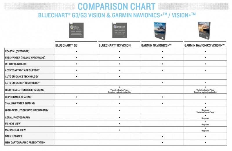 Koe vertaansa vailla oleva kattavuus ja loistavat yksityiskohdat, kun olet vesillä. BlueChart g3 Vision -rannikkokartat tarjoavat alan johtavan kattavuuden, selkeyden ja yksityiskohtaisuuden integroidun Garmin- ja Navionics-sisällön avulla.• Alan johtava kattavuus, selkeys ja yksityiskohtaisuus päivitetyillä rannikkokartoilla, joissa on integroitu Garminin ja Navionicsin® sisältö• Auto Guidance¹ -tekniikka laskee nopeasti ehdotetun reitin käyttämällä haluamaasi syvyyttä ja yläpuolella olevaa vapaata tilaa• Sisältää jopa 10 syvyysalueen varjostuksen, jonka avulla voit tarkastella kohdesyvyyttäsi yhdellä silmäyksellä• Jopa 1’ ääriviivat antavat tarkemman kuvauksen pohjan rakenteesta parempia kalastuskarttoja varten• Jotta saat selkeän kuvan vältettävistä matalista vesistä, matalien vesien varjostus mahdollistaa varjostuksen käyttäjän määrittelemällä syvyydelläAutomaattiopastusOlitpa sitten kalastamassa tai matkalla, valitse paikka ja saat reitin, joka näyttää yleisen reitin ja lähellä olevat esteet turvallisessa syvyydessä1.Syvyysalueen varjostusTämä ominaisuus näyttää korkearesoluutioisen syvyysalueen varjostuksen jopa 10 syvyysalueelle, jotta voit tarkastella määritettyä kohdesyvyyttä.Matalan veden varjostusTämä ominaisuus mahdollistaa varjostuksen käyttäjän määrittelemällä syvyydellä, jotta saat selkeän kuvan vältettävistä matalista vesistä.Tarkat ääriviivatBlueChart g3 Vision -kartoissa on 1’ ääriviivat, jotka antavat tarkemman kuvauksen pohjan rakenteesta parempia kalastuskarttoja varten ja lisää yksityiskohtia soilla, kanavissa ja satamasuunnitelmissa.Korkearesoluutioiset satelliittikuvatKorkearesoluutioiset satelliittikuvat, joiden päällä on merikarttoja, antavat realistisen näkymän ympäristöstäsi. Se’on realistisin karttaplotterimme karttanäyttö — ihanteellinen, kun astut tuntemattomiin satamiin tai satamiin.FishEye-näkymäTämä vedenalainen näkymä näyttää pohjan ja ääriviivojen kolmiulotteisen esityksen vesirajan alapuolelta katsottuna. Liitäntä kaikuluotaintietojen kanssa räätälöityä näkymää varten.MarinerEye-näkymäTässä näkymässä on kolmiulotteinen esitys ympäröivästä alueesta sekä vesirajan ylä- että alapuolella.Aerial PhotographyKristallinkirkkaissa ilmakuvissa näkyvät poikkeuksellisen yksityiskohtaiset tiedot monista satamista, satamista ja venesatamista, ja ne ovat ihanteellisia, kun saavutaan tuntemattomiin satamiin.LatausvaatimuksetTiedostotiedotTiedostokoko tämän latauksen osalta ja tilaa, joka tarvitaan microSD™/SD™-kortilla, on 0 Mt. Tätä latausta ei suositella ladattavaksi suoraan laitteeseen. Sen voi ladata vain valmiille tai tyhjälle microSD/SD-kortille (karttatietojen ohjelmointiin voidaan käyttää kierrätettyjä microSD-kortteja).Ohjelmistopäivityksiä varten saatetaan tarvita enintään 500 Mt lisätilaa.KattavuusTarkka kattavuus Skandinavian ja Pohjoisen Keski-Euroopan rannikolla Belgiasta Norjan/Venäjän rajalle, mukaan lukien Alankomaiden, Saksan ja Tšekin sisävesiväylät sekä valitut Skandinavian ja Keski-Euroopan sisävedet. Kattavuus kattaa muun muassa Huippuvuoret, Itämeren, Skagerrakin ja Kattegatin salmet, Pohjanlahdet, Suomen ja Riian lahdet, IJsselmeerin, Kielin/Lübeckin/Flensburgin kanavan, Reinin, Tonavan, Bodenjärven, Balatonin, Mazurian järvialueen ja Peipusjärven.