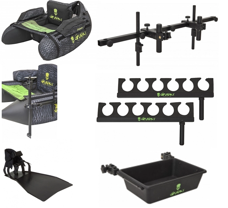 Kaikki mitä tarvitset yhdessä paketissa!Vatsavene: Täydellinen malli pienempiin tapahtumapaikkoihin ja nopeisiin kiertäviin sessioihin. Sopii erinomaisesti kiperiin paikkoihin ja on erittäin huomaamaton, kun se on vedessä. Kevyt ja erittäin helppo ohjattava. Viimeistelty camo-kalan väriseksi ylimääräistä hienovaraisuutta varten. Irrotettavat tarrakiinnitteiset heijastavat turvanauhat. Sisältää:• Gunki keskitasku (x2) • Korjaussarja • Kuljetushihnat • Jalkapumppu • Vavan raapaisu • Säilytyspussi • Heijastavat turvanauhat (3 kpl) Tekniset tiedot: 5.4kg • Puhallettava istuin, jossa säädettävät hihnat selkänojalle • Etutanko ja turvahihna • Irrotettavat ja uudelleen sijoitettavat turvataskut • Säilytystila selässä • Virtaviivainen V-muoto • Cary-kahva • Irrotusmatto mittauksineenKaikuluotaimen kiinnike 58cm:Soveltuu Gunkis-tarviketangon etuosaan. Voit helposti asettaa sen pystysuoraan täydellistä asennusta varten.Gunki Accessory Bar 80cm:Soveltuu helposti ja turvallisesti Gunki-vatsaveneen oikealla tai vasemmalla puolella oleviin renkaisiin. Tämä hallitsee kaikkia Gunkin kelluntatuubin tarvikkeita.Sauvojen pidikesarja 33,5cm:Sauvojen pidikkeet Gunkin vatsaveneisiin. Voidaan asentaa mihin tahansa Gunkis tarviketangon varrelle tai tarviketangon jalkoihin ruuvattaviin ruuveihin. Vapapidikkeessä on 6 kpl 40mm aukkoja.Sivutarjottimen kulho 34x9x23cm:Erittäin käytännöllinen apuväline Gunki vatsaveneeseensä. Sopii myös Gunkin tarviketankoon.Lyhyt airo Fenor 24x45cm:Lyhyet evät, joissa on suuret terät, täydelliset tarkkaan ja sujuvaan manöövereihin väsymättä liikaa. Suunniteltu vatupassikalastukseen, yleispätevä. myydään tietenkin pareittain.