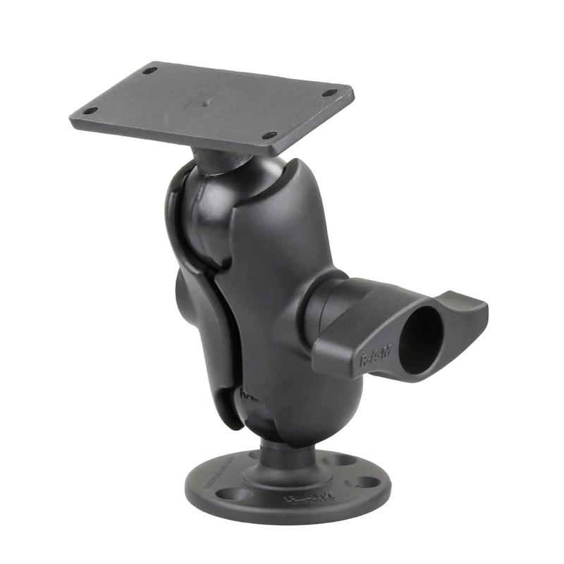 RAM-D-202-25-C-202, pulverimaalattu merialumiinikiinnike, koostuu kaksoispistovarresta, yhdestä pyöreästä 3,68 tuuman halkaisijaltaan pyöreästä jalustasta ja yhdestä 2″” x 5″” suorakulmaisesta levystä.Pyöreässä levyssä on kaksi kiinnitysreikää 180 asteen kulmassa ja kolme kiinnitysreikää 120 asteen kulmassa. Suorakulmaisessa levyssä on 4 reikää 1,5″” x 4,5″”. Patentoitu kumikuula- ja sokkelitekniikka vaimentaa iskuja ja tärinää ja mahdollistaa lähes rajattoman säädettävyyden, joten voit asettaa laitteesi täydelliseen katselukulmaan, samalla kun se soveltuu kaikkiin karuihin ympäristöihin. Yhteensopiva Humminbird Helix 9, Humminbird Helix 10 ja Humminbird Helix 12 -laitteiden kanssa.