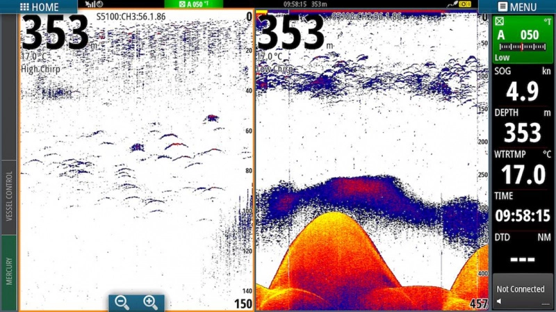 Simrad S5100 -kaikuluotainmoduulissa on kolme täysin itsenäistä kanavaa, jotka pystyvät tarjoamaan korkean resoluution CHIRP-kaikuluotainta useilla syvyysalueilla. Yhdistelemällä ja yhdistelemällä jopa kolmea anturia voit tarjota täydellisen kattavuuden mihin tahansa kalastustyyliin. Havaitse pienet tai tiiviisti ryhmittyneet kalat, tunnista lämpölinjat ja kohdista katseesi tiettyihin syvyyksiin helposti.Keskeiset ominaisuudet Kolme täysin itsenäistä kaikuluotainkanavaaKorkearesoluutioinen, kohinaton selkeys kaikilla syvyysalueillaKombinoi mitä tahansa kolmea CHIRP-taajuusaluetta useiden syvyyksien kohdentamiseksiYhteensopiva laajakulmaisten antureiden kanssa laajemman kattavuuden saavuttamiseksiMonien eri syvyysalueiden samanaikainen jaetun ruudun katseluMaksimisyvyys 3,000 metriä / 10 000 jalkaa (riippuu anturista)Plug-and-play 9-nastainen anturiliitin helpottaa asennusta- Kolme täysin itsenäistä kaikuluotainkanavaa:Korkearesoluutioinen, kohinaton selkeys kaikilla syvyysalueillaYhdistää mitä tahansa kolmea CHIRP-taajuusaluetta useiden syvyyksien kohdentamiseksiYhteensopiva laajakulmaisten antureiden kanssa laajemman kattavuuden aikaansaamiseksiMonien syvyysalueiden samanaikainen jaetun ruudun katseluMaksimisyvyys 3,000 metriä / 10,000 jalkaa (riippuu anturista)Plug-and-play 9-nastainen anturiliitäntä helpottaa asennusta- Jopa kolme anturia äärimmäiseen näkyvyyteen:S5100 on ensimmäinen kaikuluotainmoduulimme, jossa on kolme täysin itsenäistä kaikuluotainkanavaa, mikä tarjoaa todellisen samanaikaisen kattavuuden jopa kolmella eri syvyysalueella tinkimättömällä suorituskyvyllä jokaisella alueella. Kytke kolme yksikanavaista anturia tai yhdistä yksi kaksikanavainen ja yksi yksikanavainen pariksi ja luo täydellinen kaikuluotainpeitto kalastamillesi alueille ja kohteena oleville lajeille. Koska kaikki kolme kaikuluotainkanavaa ovat täysin riippumattomia, eri taajuusalueita voidaan tarkastella samanaikaisesti jaetulla näyttöasettelulla yhdellä näytöllä.- Terävämpi kohteen erottelukyky, laajempi peittoalue:CHIRP-tekniikka käyttää taajuuspulsseja tarjotakseen paremman kohteen erottelukyvyn ja kohinanhylkäämisen perinteiseen yksitaajuiseen kaikuluotainlaitteeseen verrattuna. S5100’n edistyksellisen CHIRP-tekniikan ansiosta näet selvästi pohjaan asti ilman keskiveden kohinaa tai häiriöitä. S5100 on yhteensopiva myös Airmarin laajakulmaisten CHIRP-lähettimien kanssa; ne tarjoavat paremman kattavuuden ylempään vesipatsaaseen ja sopivat täydellisesti pelagisten lajien kalastukseen. Laajakulmaiset anturit ovat hyödyllisiä myös matalassa vedessä, jossa perinteiset kapeat sädekulmat voivat tarjota rajoitetun pohjan peiton. Laajempi peittoalue ei ainoastaan nopeuta etsintää, vaan myös yksittäiset kalakohteet ovat helpommin havaittavissa.- Plug-and-Play-näytön yhteensopivuus:S5100:aa voidaan käyttää lisäämään kaikuluotausominaisuuksia modulaariseen Simrad-näyttöjärjestelmään tai tarjoamaan lisäluotausominaisuuksia monitoiminäyttöihin tai kalanetsintälaitteisiin, joissa on sisäänrakennettu luotaintekniikka. Nopea Ethernet-yhteys mahdollistaa helpon asennuksen lähes minne tahansa aluksella, kaikenkokoisiin aluksiin.- Vähimmäistuotevaatimukset:Tarvitaan yksi tai useampi yhteensopiva anturi ja yhteensopiva* Ethernet-yhteydellä varustettu Simrad-monitoiminäyttö tai kalanetsijä. *Ei ole yhteensopiva GO- tai Cruise-ohjelmien kanssa.Mitä laatikossa on?7-nastainen anturi 9-nastaiseen kaikuluotainadapteriinEthernet-kaapeli, 15 ftVirtakaapeli, 4-nastainen.